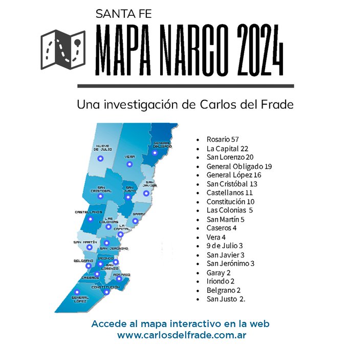 El diputado provincial del Frente Amplio por la Soberanía, Carlos del Frade, presentó un proyecto de comunicación para informar sobre más de 200 organizaciones vinculadas al narcotráfico, con relaciones con nichos corruptos de las fuerzas de seguridad. Además, acompañó la iniciativa con un mapa interactivo.