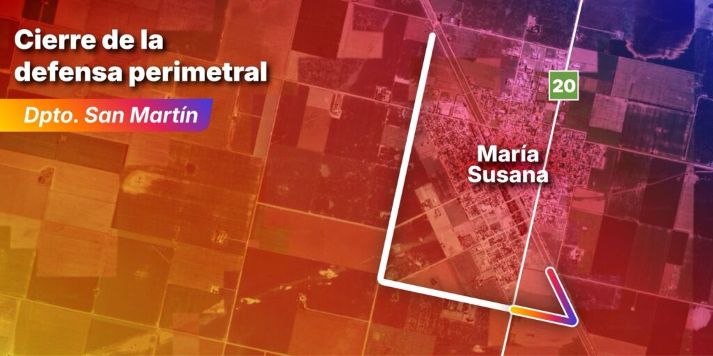 Desde el Ministerio de Obras Públicas explicaron que las obras para el cierre de la defensa perimetral de María Susana contemplan el reacondicionamiento del canal que intercepta los excedentes pluviales que ingresan al casco urbano, el alteo de caminos comunales para elevar la traza vial y evitar el ingreso del agua y, al mismo tiempo, delimitar el perímetro de la localidad.