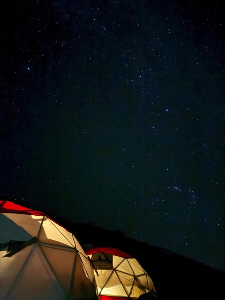 Al regresar a los domos, prepararon nuevamente las mochilas, comieron algo y comienza el descenso hasta el pie del volcán. “Llegamos entre las 21 y 22, son entre 18 y 20 horas de caminata, no sentís más las piernas”, recordaron.