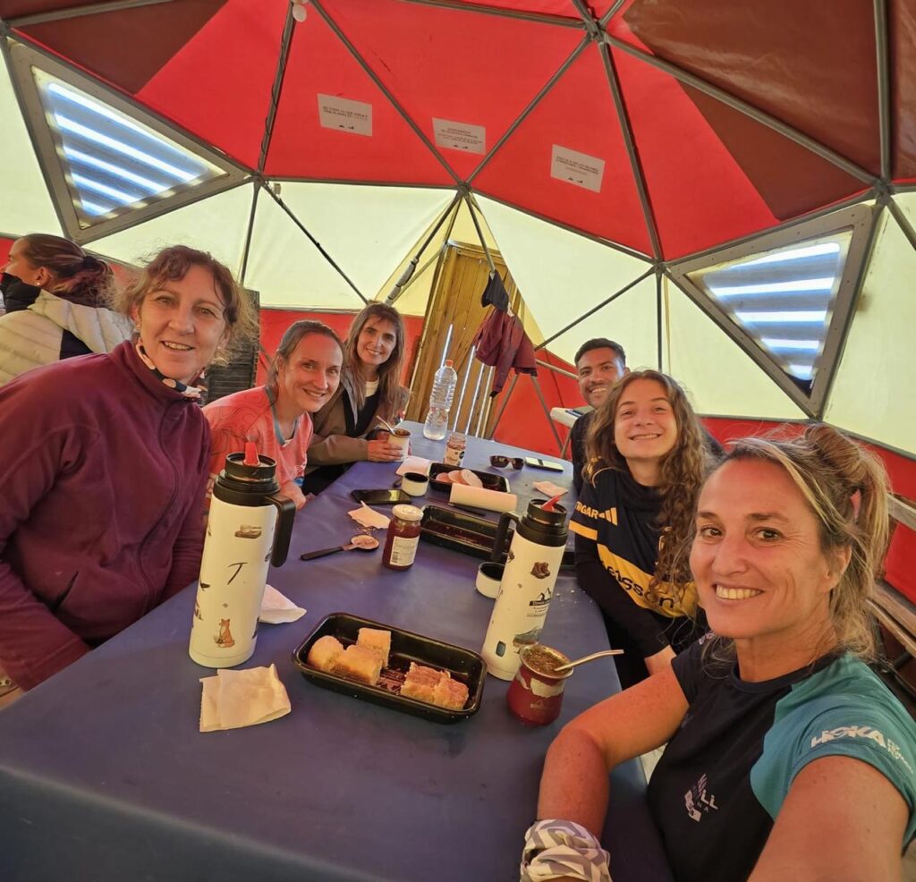 ─ Fue todo otra cosa, porque nos sentamos a tomar mate, nos fuimos conociendo con el resto del grupo. Comimos focaccia. Comimos muy bien porque hay un muchacho de ahí que está todo el tiempo y cocina para todos. Y cocina muy bien. Ahí empezamos a integrarnos, a conocernos. Sí, ahí lo empecé a disfrutar realmente. Después nos mandaron a dormir a las ocho en los domos.