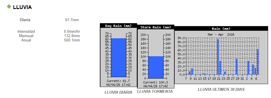 Lo cierto es que, en Piamonte, según los datos recabados por la estación meteorológica de la Cooperativa Telefónica, en lo que va de este lunes ya cayeron más de 60 milímetros, acumulando, desde el inicio de abril, alrededor de 133 milímetros. Y, en lo que respecta a este 2026, ya son 560.