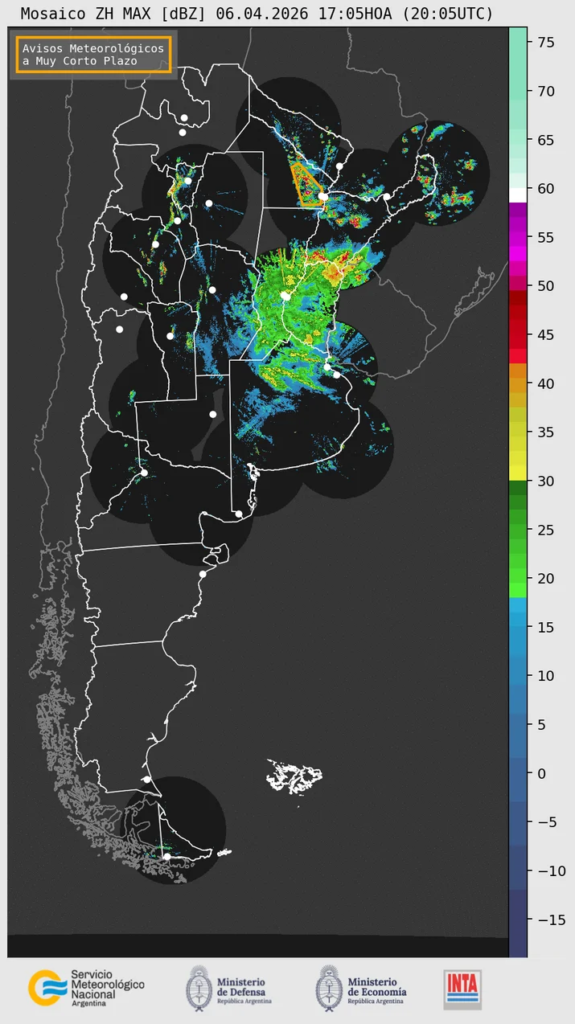 Por su parte el Servicio Meteorológico Nacional mantiene al territorio provincial bajo alerta y se espera que las precipitaciones cesen durante las primeras horas del martes. Mientras que Meteored Argentina señaló que en el centro del país “progresivamente se afianzan las condiciones más estables tras el paso del sistema frontal”.