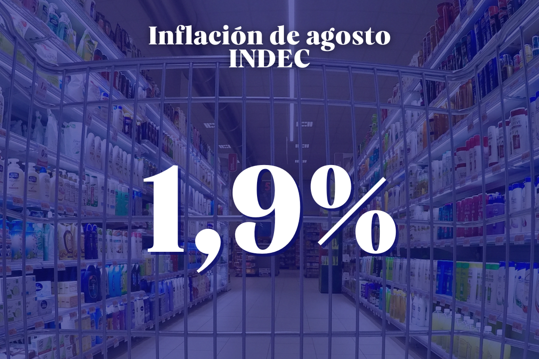 El Instituto Nacional de Estadísticas y Censos (Indec) publicó este miércoles su última medición de inflación. El nivel general del Índice de precios al consumidor (IPC) registró un alza mensual de 1,9% en agosto y acumuló en el año una variación de 19,5%. En la comparación interanual, el incremento alcanzó el 33,6%.