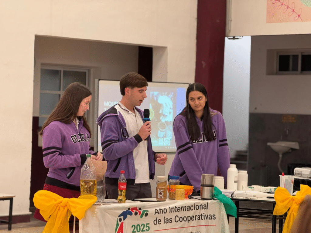 Se trata de un proyecto realizado por docentes de distintos espacios curriculares junto a los alumnos y alumnas de quinto año de ambas modalidades. Previamente se capacitaron junto al programa Espuma en la elaboración del producto, que busca cuidar el medioambiente y fomentar la economía circular.