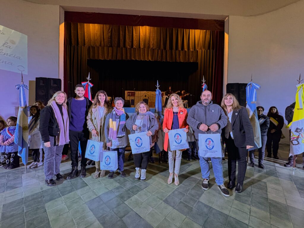 El viernes pasado, en el marco de las celebraciones por el Día de la Declaración de la Independencia, la gestión comunal aprovechó para entregar la nueva insignia a todas las instituciones educativas de la localidad, junto al ganador del certamen y a la delegada de Educación e impulsora del concurso, Danisa Astegiano.