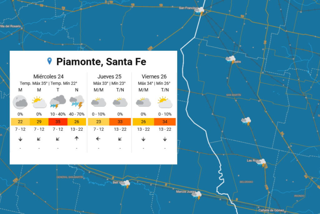Según el pronóstico del SMN, por la tarde del miércoles las temperaturas máximas rondarán los 35º en la región. Luego, vendrán las lluvias y tormentas, aunque con mayor probabilidad por la noche, y con ellas un breve alivio del calor.