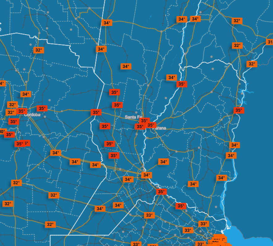 Tomando el último parte oficial del SMN, a partir del jueves de Navidad y hasta el fin de semana no se pronostican precipitaciones, pero sí altas temperaturas sostenidas por encima de los 30º.