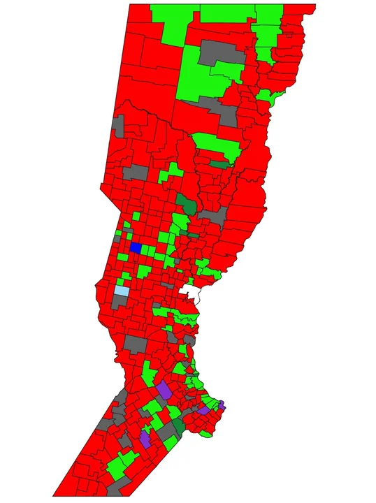 “Quiero que vean este mapa de la bota de Santa Fe. Adivinen quién es el rojo. La bota quedó pintada de un solo color”, afirmó Pullaro, que ofreció en discurso desde el búnker electoral acompañado por la vicegobernadora Gisela Scaglia.