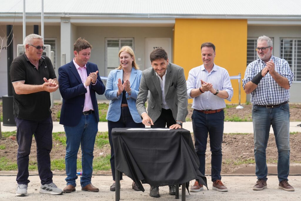• Piamonte: Se entregaron 12 viviendas —once del prototipo compacto de dos dormitorios y una adaptada para personas con discapacidad motriz—, todas de 67 m², con baño equipado, cocina-comedor, lavadero externo, aberturas de aluminio, mesada de acero inoxidable y servicios básicos completos. El barrio cuenta, además, con alumbrado público LED, veredas y arbolado.